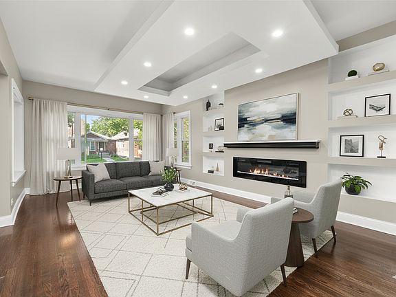 Welcome to this newly renovated 6 bed, 2 bath, bungalow in the beautiful South Shore neighborhood. This spacious home combines timeless Chicago character with modern upgrades. Step inside to find sun filled rooms with gleaming hardwood floors, recessed lighting, and designer tray ceilings. The living room features custom built-in shelving and a fireplace, while oversized windows bring in abundant natural light. The chef's kitchen is a true showstopper, boasting quartz countertops, a large island, pot filler, all new stainless steel appliances, wine rack, and a bold designer backsplash. Pendant lighting adds a stylish finishing touch. Both bathrooms are luxuriously updated with towel warmers, bluetooth mirrors, and a spa-inspired full body shower system. The fully finished basement provides a spacious recreation area with modern flooring and another fireplace, while the finished attic serves as a private retreat with two additional bedrooms. Additional bonuses include a newer roof, new flooring throughout, central air, and a detached 2-car garage. Located in South Shore, this home offers unbeatable access to the lakefront, University of Chicago, and the highly anticipated Obama Presidential Library. Downtown Chicago is just a short commute, making it easy to enjoy all the cultural, dining, and entertainment experiences the city has to offer. Schedule your private tour now!