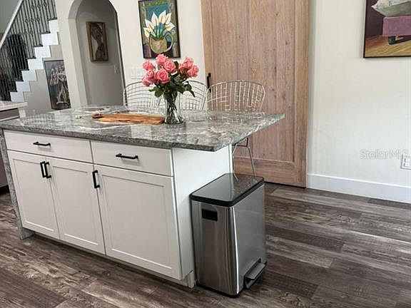 Private courtyardMaster suiteLaundry roomOpen-concept first floorModern kitchenStainless steel appliancesBreakfast area