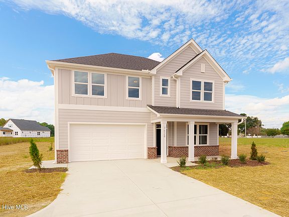 This stunning new construction in The Finchlands Subdivision offers refined country living on nearly an acre in the highly sought-after Rock Ridge School District. The 4-bedroom, 2.5-bath Hickory Floor Plan combines timeless craftsmanship with modern comfort, just minutes from Wilson, Zebulon, and Raleigh. The exterior features durable James Hardie Color+ cement siding with classic brick accents, leading into an elegant interior with 9' ceilings, custom-stained oak handrails with white balusters, and stylish LVP flooring throughout the main level. The gourmet kitchen is a true centerpiece, boasting granite countertops, stainless steel appliances, and ample storage—ideal for everyday living or entertaining. Additional main-level spaces include a formal dining room and a versatile flex room, while the upstairs loft provides extra space for work, play, or relaxation. The luxurious primary suite offers a fully tiled shower and a spacious walk-in closet. Built with energy-efficient spray foam insulation and well water, this home is designed for comfort and sustainability. Step outside to the covered back porch and enjoy the expansive backyard, perfect for peaceful evenings or weekend gatherings. 7628 New Sandy Hill Church Rd combines quality construction, thoughtful design, and country charm to create the perfect Rock Ridge retreat.