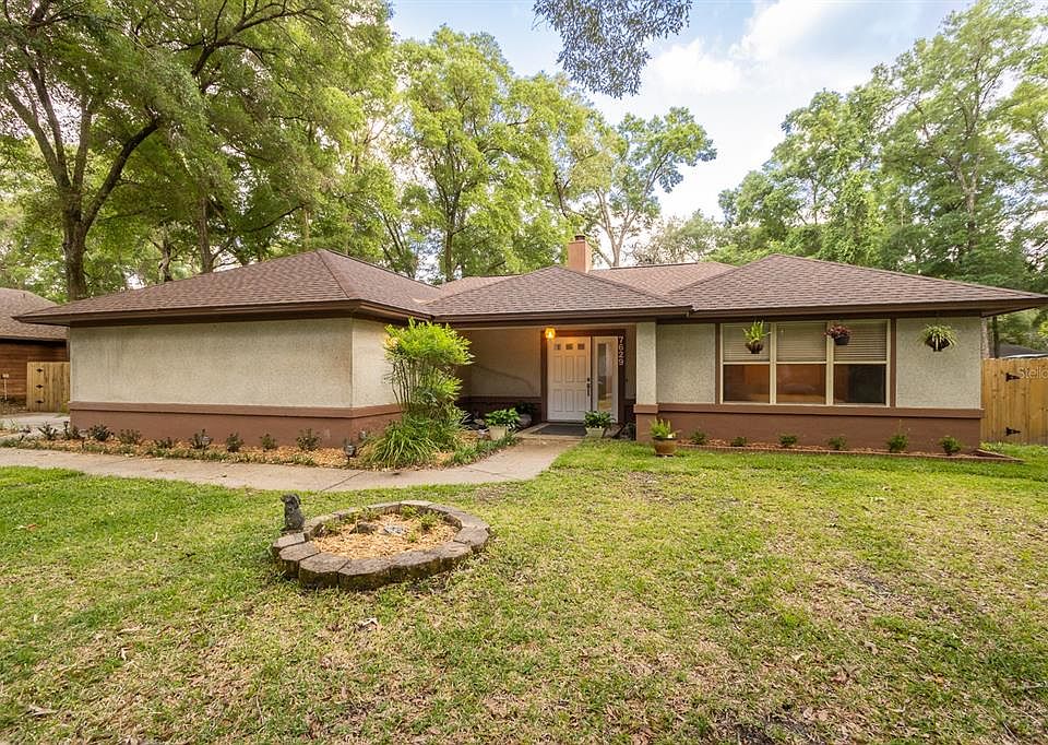 One or more photo(s) has been virtually staged. Meticulously maintained 3 Bedroom/ 2 Bath Pool home with Office. You won’t want to miss this home! It’s hot in Florida, so go ahead and sit by the gorgeous pool with screened in enclosure. The pool is heated with solar panels for lower utility bills. Live the FL life and park your RV or boat in the side yard. Tinker in the outdoor shed, solidly placed on its own slab. Inside, the open Kitchen boasts Corian countertops, updated cabinets with extra pull out features and lazy susan corner cabinets. Newer Kitchen appliances are only about 2 years old. There’s a separate Dining Room for fun get-togethers. The extra office/flex space has a built-in desk, built-in shelves, and a queen size Murphy bed. Large Master suite has two vanities, a jetted tub and a separate shower. Like storage? Master suite also has a walk-in closet and linen closet, and the other 2 bedrooms have double closets. There’s an extra walk-in storage closet, attic space in the 2 car garage, and even an outdoor shed. Want your own wood burning fireplace? It has that too. Best of all, this home really has been meticulously cared for. All of these major items have been updated within the last five years for a worry free home: New Fence (2023), New Roof (2022), Pool and Deck Resurfaced (2022), New Kitchen Appliances (2022), New AC (2019), New Pool Pump (2019). Hate cookie cutter homes that are squeezed together? This home is on an oversized .35 acre lot. Plenty of lush green grass, oak trees, and even a couple of fruit trees in the back. Plus, HOA is less than $40/month! If schools are your main concern, don’t worry. This home is zoned for some of the highest rated schools in Gainesville: Chiles Elementary, Kanapaha Middle, and Buchholz High School. Prime Location: Only 7 minutes to I-75, only 7 minutes to Haile Village Center, 9 minutes to the Oaks Mall and all of the surrounding restaurants, 8 minutes to HCA North FL Hospital, 10 minutes to Santa Fe College, 17 minutes to University of FL, and only 17 minutes to UF Health Shands.