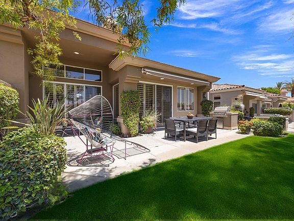 Available September & October 2025 at $5,000/month, November $9,500/month and December 2025 at $10,000! South-Facing Golf Course Living at Its Finest - Welcome to 763 Box Canyon Trail! Nestled in the heart of Indian Ridge Country Club, this beautifully maintained home offers the perfect blend of resort-style living, elegant comfort, and stunning golf course views. Positioned along the 7th hole of the Grove Course with a desirable south-facing orientation, this property captures abundant sunshine and showcases panoramic fairway vistas - plus a peaceful water view to the east that adds to the tranquil charm of the outdoor space. Step inside the Acacia 4 floor plan, offering 2,182 square feet of light and bright living space with 3 spacious bedrooms and 3.5 bathrooms. The interior has been thoughtfully updated with new plank vinyl flooring that flows seamlessly from room to room, creating a clean, contemporary feel. The open-concept design allows for easy entertaining, while large windows frame the natural beauty of the surroundings and flood the home with warm desert light. Outdoors, the back patio is an entertainer's dream, complete with a built-in BBQ, ideal for weekend grilling, hosting guests, or simply enjoying a quiet sunset with a cocktail in hand. Whether you're sipping morning coffee with views of the water or watching golfers navigate the fairway, every moment feels like a getaway. This home is furnished with Restoration Hardware plus the use of the owner's golf cart and a Mercedes-Benz. Club Membership is available with a 3-month minimum lease & membership approval, providing access to the exceptional lifestyle Indian Ridge is known for. The community boasts world-class amenities, including a state-of-the-art fitness center, luxurious spa services, fine and casual dining, and a vibrant calendar of social events and recreational activities - all designed to offer the very best of desert living. If you're seeking a seasonal escape, this home has unmatched opportunity to vacation in one of Palm Desert's most prestigious private clubs. Owner pays monthly HOA dues that include cable and internet. Landlord pays monthly caps on electric and gas.