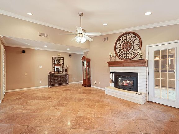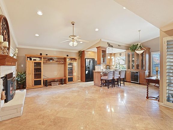 Tucked inside the desirable Beckman Estates Planned Unit Development, this inviting home offers a blend of style and comfort. Inside, you'll find 3 bedrooms and tastefully refreshed guest bathroom, including a beautifully remodeled primary bathroom featuring heated flooring for those cozy mornings. The bedroom closet have closet kits making them very functional. The kitchen has been remodeled with granite counters, modern finishes, and a built-in wine refrigeratorperfect for everyday cooking or entertaining. Tile flooring runs through most of the home for a clean, cohesive feel, and the gas fireplace insert with remote adds warmth and ambiance with the touch of a button. Step outside to a thoughtfully landscaped back patio complete with a full drip system an easy-care space ideal for relaxing or enjoying weekend gatherings. The gutters are equipped with leaf guard system and the garage is equipped with a pull down ladder for attic storage. A charming, move-in-ready home in a well-kept community!