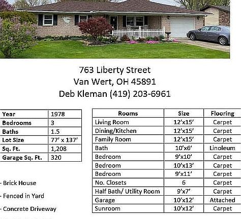 For Sale by Owner: A charming 3 bedroom, 1.5 bathroom ranch home located on a quiet, dead-end street. Beautiful curb appeal with a fenced in back yard. One car attached garage with a small shed in the back. You can enjoy coffee in the screened in patio room. Call or text Deb (419) 203-6961 to schedule your private showing!
