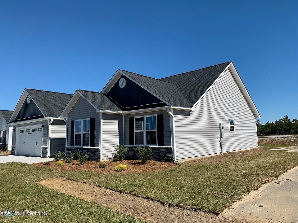 Welcome to the highly desired & popular community of Onslow Bay. Brand new construction built by Onslow County's most trusted & preferred builder, featured in Builder 100/ Top 200 Builders in the country. Onslow Bay is a hot spot, 3 miles to MCB Camp Lejeune's Piney Green gate, 14 miles to New River Air Station & minutes to area schools, shopping & dining. This beautiful neighborhood is sure to impress, complete with a clubhouse area & community pool. The Vienna 1583, 3 bedrooms & 2 bath with approx. 1583 heated square feet. The quaint but spacious foyer welcomes you into the huge 14x13 living room that is open to the kitchen. The living room features a ceiling fan and a fireplace with a custom mantel. The kitchen features staggered flat panel cabinets, a pantry, and stainless-steel appliances to include a smooth top range, dishwasher, and a built-in microwave. The grand master bedroom is approx. 12x 16 with a huge walk-in closet that is approx. 9x13. Master bath features dual vanity, separate shower and a soaker tub. Bedrooms 2 & 3 are on the opposite side of the house giving you plenty of privacy, both prewired for a ceiling fan. Out back is your open patio for all your entertaining or morning coffee. Call today! NOTE: Floor plan renderings are similar and solely representational. Measurements, elevations, and specs may vary in final construction. Limited selections for buyer to choose. Call L/A to verify.