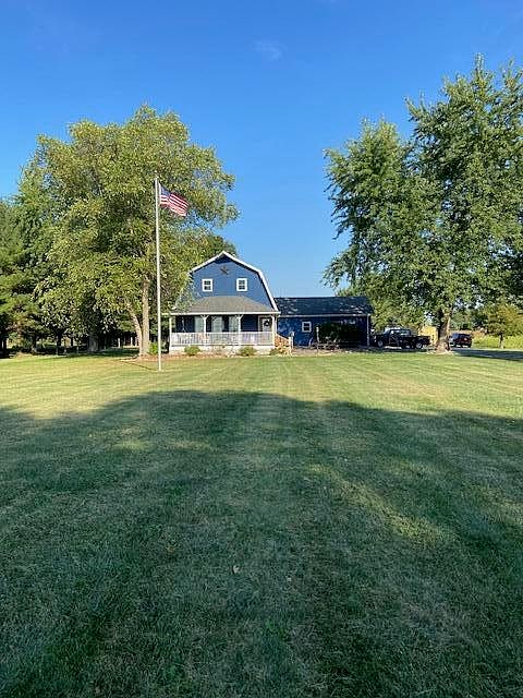 Beautifully updated 3 bedroom, 2 bathroom farmhouse on a tranquil 4.85 acres. Covered front porch leads you into an open concept maim living area. The large living room features a stone gas fireplace. The updated kitchen has and island with seating, quartz countertops and stainless steel appliances. There is a laundry room and a full bath on the main level. Upstairs there are 3 bedrooms, a loft and a second full bath. Outside there is plenty of room to entertain with a large fenced in area that includes a paver patio, an above ground pool with a large deck and a firepit. The pole barn includes a car lift, attached office, a half bath and gas heat as well as a wood stove. The property also has a 2 stall barn with a fenced in pasture. Windows, doors furnace and air all new in 2016-17. New vinyl siding in 2023 and new garage doors in 2024.
