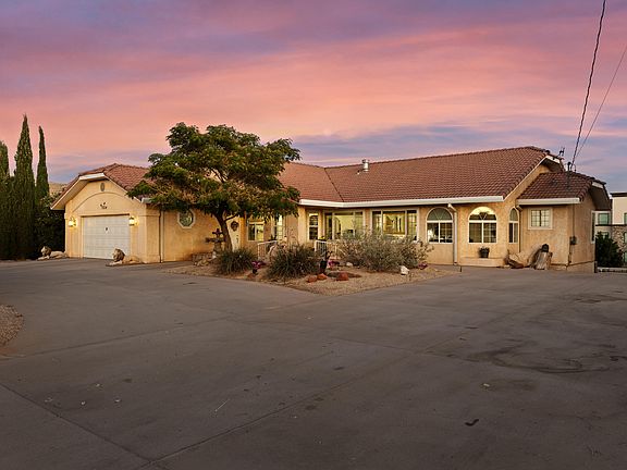 Additional highlights include an oversized two-car garage with built-in storage, a circular porte-cochère-style driveway for easy access, and a secondary paved drive leading to a covered RV port in the backyard. The property is partially fenced and includes a huge walk-in storage space that truly must be seen to be appreciated.