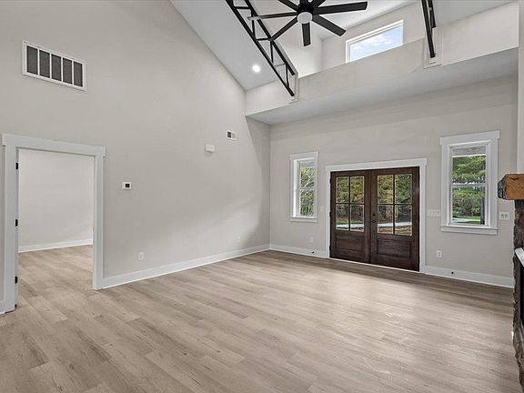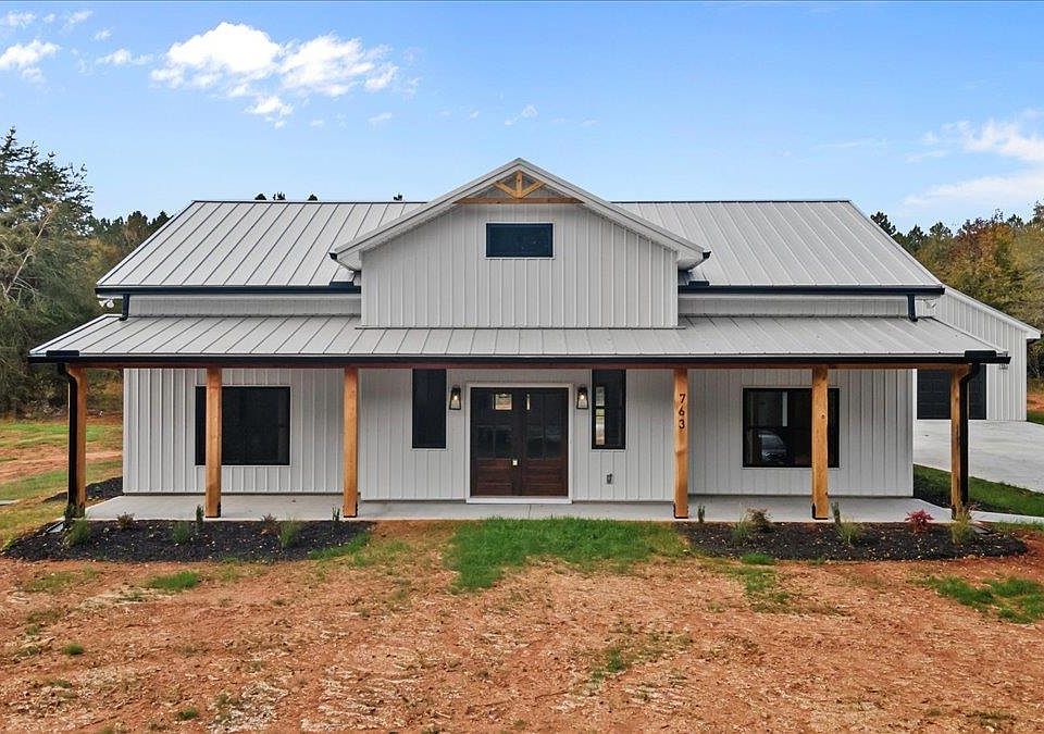 Welcome to this beautiful barndominium build located at 763 Wilkie Bridge Rd! This stunning new construction barndo sits on 5 acres of partially wooded land. Approaching the home, you'll find a paved concrete driveway from the road to the garage with walkways leading to the home and additional parking available in the driveway. This barndo features a little over 1,600 sq ft of living space, 700 sq ft of porch space, and a 900 sq ft, 2 car detached garage that has many uses! Upon walking up to the front door, you'll notice timber posts and a tongue and groove porch ceiling that creates a wow factor before you even enter the front door. Entering the front door, you'll be greeted by the vaulted great room. This floor plan has an open concept great room space that incorporates the kitchen, living, and dining room. This kitchen features soft close cabinetry, quartz counters throughout, a pantry, farmhouse sink, and LG appliances. To the right of the great room is where your master suite is located; equipped with a walk-in closet, tile walk-in shower, quartz counters, and a soaking tub! There is plenty of additional storage in the master bathroom as well. To the left of the great room space, you'll find your full second bathroom and your two guest bedrooms. There is an additional closet for linen storage on this side of the home, as well as your washer/ dryer closet with hookups. Leading out of the rear of the barndo, there is a spacious covered rear porch that also features the timber posts and tongue and groove ceiling. This build also features a lifetime membership, as long as the homeowner has the property, to the Riverbend Sportsman Resort. The resort has a beautiful lodge with a full service kitchen for events, fireplace, and sitting rooms for all members to enjoy. There is also a clay shooting course and clay shooting station that can be utilized. If you have guests coming into town, let them stay at the cabins at the resort, yet another amazing feature for the homeowner to enjoy! Nothing was spared in the construction of this barndo; such as the engineered steel trusses that provide a minimum of an 130 mph wind rating, the open cell spray foam encapsulation in the living space creating energy efficiency, steel siding, and steel roofing as well for durability and low maintenance!