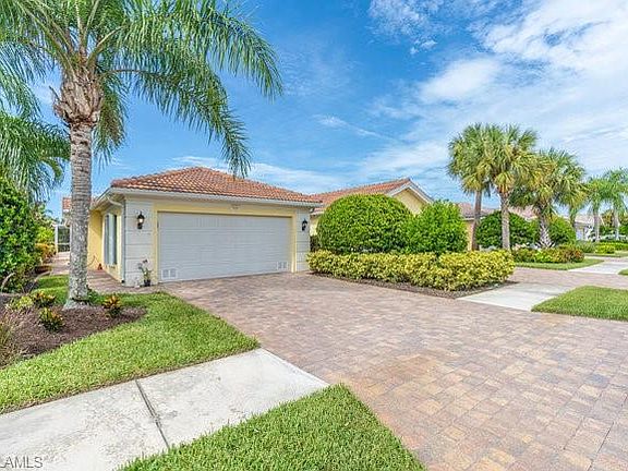Just listed in the gated community of VeronaWalk is this partially furnished, two bedrooms with den/two bath Capri attached villa. A welcoming side path leads to a glass entry door and into the vaulted ceiling home. The centrally located kitchen has an abundance of cupboards and expansive counters with a great breakfast bar for informal dining. Floors are tile in much of the home with carpet in the living room area and bedrooms. Ample storage extends into the full laundry room with more cabinetry and a large pantry closet. Access to an attached two car garage is from the laundry for ease of entry. The split bedroom floorplan locates the two-bedroom suites on opposite ends of the unit with each having their own full bath and walk-in closet. This home has a New Roof. A tremendous upgrade leaving you worry free for years to come. Windows have accordion shutters making storm preparation almost effortless. Upon exiting from a bank of sliding doors is a covered lanai that opens into a screen enclosure with an inviting rectangular pool. A six-foot concrete wall is a buffer on both sides of the patio for privacy when relaxing poolside or entertaining. A meandering waterway can be enjoyed from your outdoor space.