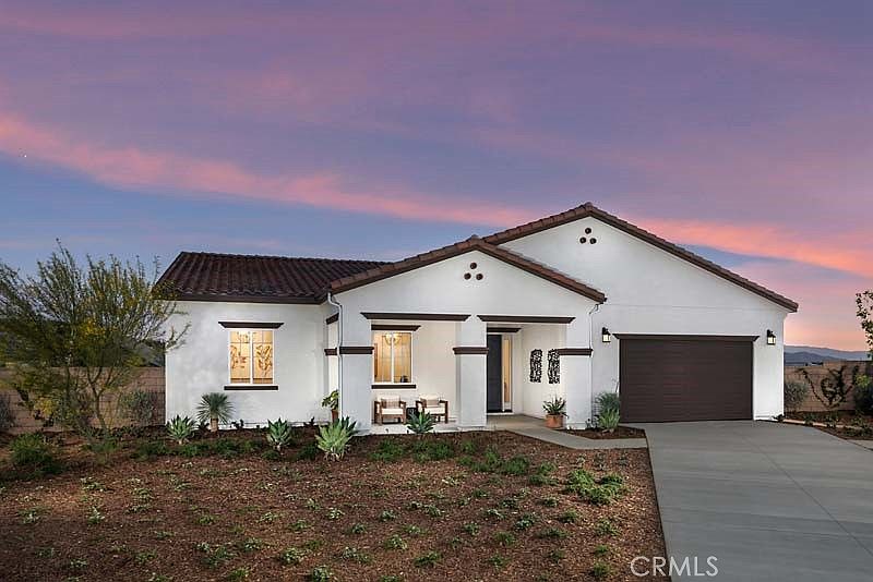 QUICK MOVE-IN MODEL HOME!! Brand New Energy Star Home in Alesandro Heights. This gorgeous single level home provides a great use of space and flow. A home office space off the entry provides a place to focus on work and allows the ability to step out to the spacious covered porch for a break. The Great Room, Dining, and Kitchen areas are bright and opens to the rear covered patio area to enjoy outdoor dining and entertaining with a view! The Primary Bedroom is privately located and includes a large bath and closet space. Enjoy all the benefits of building a brand-new Beazer home – Energy Star, Indoor Air Plus Certified, Third Party Tested, HERS tested, and a 10/5/1 year Warranty. This home has a beautiful, landscaped backyard with fruit trees, and well-designed sitting areas maximizing the views! Estimated closing March 2024.