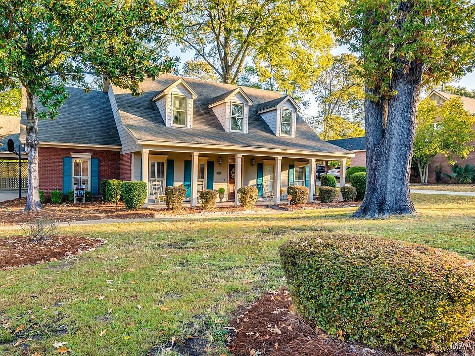 Front porch sitting under magnificent mature oak trees! This home features a classic southern style architecture with it's long, expansive front porch and plenty of room for rocking chairs. Step inside the foyer and you're greeted with a traditional layout featuring a spacious formal living room and elegant formal dining. Just beyond the foyer is a family room with a warm fireplace and soaring 2-story ceilings and windows with great views of the backyard. Off the family room you'll find a large and recently remodeled kitchen with custom cabinetry, quartz countertops, stainless appliances and a perfect sized work island plus a sunny breakfast nook. Past the kitchen is a great guest suite or home office and a full bath. The master bedroom is on the first floor with a master bath featuring a deep soaking tub, separate shower, double vanity and walk-in closet. Upstairs are two large guest rooms and a Jack and Jill bath. Relax out back on another large covered porch under more mature trees. Nearly all of the main living area on the lower level has practically new luxury vinyl plank flooring. A fully fenced backyard and a two-car carport round out this beautiful home.