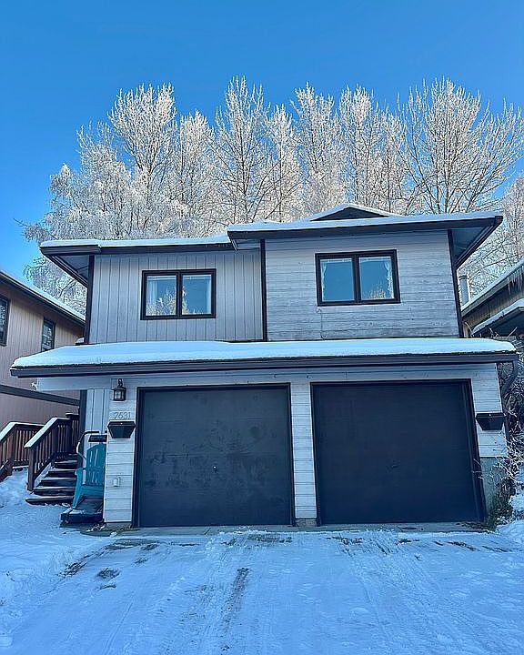 The downstairs level includes two large rooms, a bonus living area and a third bedroom. This level also features new vinyl flooring, a fully updated bathroom with new tile and shower, and a laundry area with a washing machine and electric dryer. Direct access to the two-car garage is located on this floor as well.