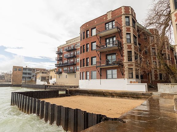 Here's your opportunity to live in a darling updated vintage condo right on Lake Michigan! This well-managed updated Vintage condo building offers water activities in your backyard. Residents have a private pier for outdoor fun, and a launching area for kayaking! Right next to Rogers Beach Park with its tennis courts and lakefront park, summer fun is a part of living here. For the residents, there's a bike room, a fitness room and even kayak storage. This two bed/one bath updated condo unit features hardwood floors, a gas-log fireplace surrounded by beautiful built-in cabinetry, bay windows, a newer built-in wall air conditioner, and in-unit laundry with Samsung washer and dryer. The kitchen with newer stainless steel appliances, great storage & work space, and a breakfast bar opens to the dining area. The updated tiled bath includes an oversized walk-in rain shower and pedestal sink. The deck area off the kitchen offers personal outdoor space and a water view. Transferrable leased garage parking is available in the building next door. And pets are welcome. Don't miss it!