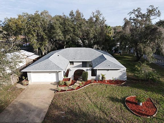 Beautifully remodeled 4 bedroom 2 bathroom block home with 2 car garage + air conditioned, glass enclosed Florida room. Home features brand new roof, new AC, new garage door. Master bath has shower and dual sinks. Kitchen has new cabinets, stainless steel appliances with 1 year warranty, eat in area and opens into family room that has wet bar. Waterproof laminate flooring throughout home. Inside laundry room with utility sink and cabinets. Oversized Garage w/opener and side entry. Freshly painted inside and outside. Home has energy saving light fixtures and crown moldings throughout. Just under 1/4 acre lot. Not in flood zone, mature landscaping giving you shade. You will not have to spend a dime on this home for long time. Close to shopping, restaurants, schools, easy commute to Tampa and Clearwater. Sold as is for seller's convenience.