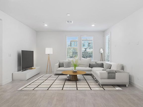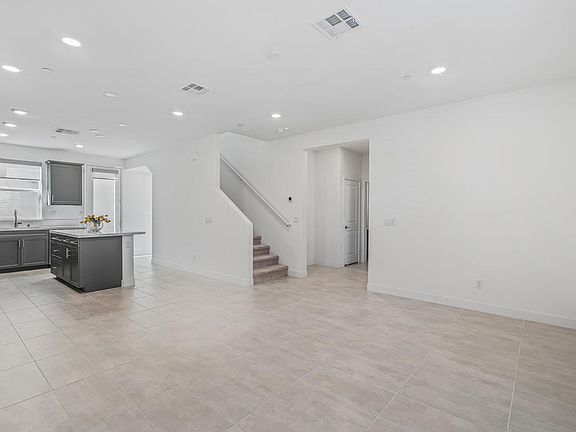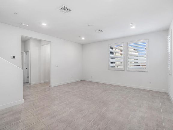 This contemporary, solar-owned Lennar home showcases an open floor plan that integrates the living and kitchen areas, complemented by custom window coverings, shaker cabinetry, quartz countertops, and tile flooring. Featuring a convenient main-floor bedroom and full bathroom, this gently used home offers a clean and fresh palette. There are three additional bedrooms upstairs, including a spacious owner's suite with a walk-in closet. Community amenities offer a recreation facility, pool and spa, BBQ area, and a cozy fire pit. Ideally situated near Acrisure Arena, golf courses, schools, and a variety of dining options, this lovely home is in a prime location.