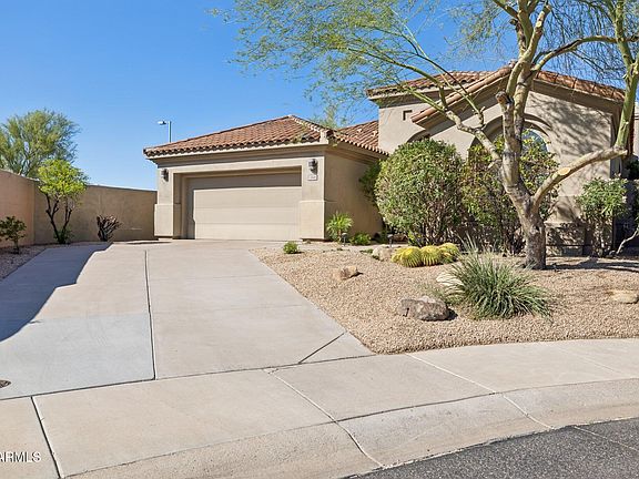 Beautifully appointed home in the highly desirable Grayhawk community of Scottsdale. This charming residence offers comfort, privacy, and convenience, located at the end of a quiet cul-de-sac with no neighbors on three sides. The spacious, light-filled floor plan features laminate flooring added in 2021 and a kitchen with updated quartz countertops added in 2023, alder wood cabinets, double ovens, and a Sub-Zero wine refrigerator. The primary suite includes an en-suite bath and large patio access to the backyard. Enjoy outdoor living with desert landscaping, a PebbleTec pool, and a built-in BBQ—perfect for entertaining. A new A/C system installed in 2022 ensures year-round comfort. Prime Grayhawk location close to trails, parks, shopping, and dining.
