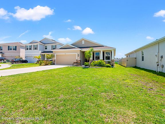 REDUCED 25,000 - PRICED WELL UNDER MARKET VALUE! Welcome to 7632 Odessa Court in the desirable Waterford community of Brooksville! This nearly new Laurel floorplan—no longer being built—offers an incredible opportunity for buyers looking for value, space, and convenience. With 3 bedrooms, 2 baths, and a very OPEN LAYOUT, this home has been lived in less than 2 years and shows like NEW. Step inside to find a huge GREAT ROOM, a bright eat-in kitchen with GRANITE countertops and STAINLESS steel appliances, and plenty of space to entertain family and friends. Enjoy peaceful backyard views of the POND from your COVERED PORCH—perfect for morning coffee or evening relaxation. The community clubhouse with pool is currently under construction, and you'll love the very LOW HOA FEES. Conveniently located near shopping, medical facilities, schools, and restaurants, this home also offers easy access to major roads for quick commutes. Best of all, it's priced well below market value and can close quickly—giving you instant equity in your new home. Sold as is, this is a rare chance to own a beautiful, move-in ready home without the wait for new construction. Don't miss it—schedule your showing today and make 7632 Odessa Court your new address!