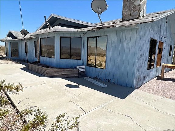 FIXER! INVESTOR DELIGHT. If you're seeking a home you can fix to call yours with a harmonious setting, look no further than this remarkable 8.9-acre property. It boasts a spacious 2,070-square-foot ranch-style home with four bedrooms and two bathrooms, providing ample living space. The property offers incredible views of Lucerne Valley and the majestic San Bernardino Mountains, enhancing its natural beauty. What sets this property apart is its self-sufficiency; it operates off the grid, utilizing solar panels and wind energy for power, while water needs to be hauled in, a tank is in place, not sure of condition. Additionally, there's a wooden deck that houses a sunken sp. With a touch of your creativity and TLC, you can transform this property into your very own paradise. The expansive land provides plenty of room for horses or outdoor recreational vehicles, allowing you to fully enjoy the desert surroundings.