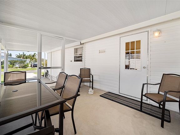 Immaculate & Move-In Ready! New roof installed May 2025. This beautifully maintained 2-bedroom, 2-bath home is light, bright, and welcoming. The open, split-bedroom floor plan offers great natural light, while the comfortable eat-in kitchen flows seamlessly to a screened patio—perfect for morning coffee or entertaining friends. An attached shed provides extra storage or space for a workshop. Situated on a desirable corner lot in Snug Harbor Lakes, this home is just 1 street from the clubhouse, where you'll find resort style community. Don't miss this one! Active 55+ community.