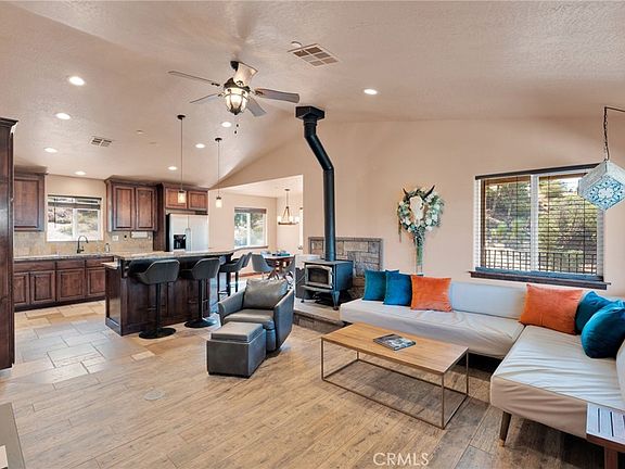 Welcome to this beautifully crafted 2 bedroom, 2 bath custom-built home nestled in Wrightwood. Wrought iron gate and paved driveway welcomes you home. Designed with comfort and style in mind, this residence features rich alder cabinets throughout, offering warmth and character, Wood burning stove to keep you warm on chilly days, Evaporative cooling for summer. A stunning wraparound redwood deck, perfect for entertaining, relaxing, or taking in the natural beauty that surrounds you. The 1st story has a full height crawl space for tons of storage, a 2,500 gallon water tank just up the hill serves as a emergency supply.