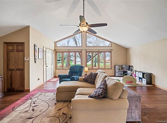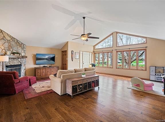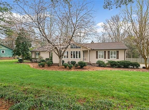 Heres your chance! Fabulous contemporary style RANCH on over 1/2 ACRE, private flat lot with lush landscaping and beautiful mature trees! NO HOA! Step into the extra-large great room with high vaulted ceilings and stone fireplace. This lovely family home boasts NEW HICKORY WIDE PLANK FLOORING throughout the main living space. Spacious Kitchen and Dining area with white cabinets, granite counters, and new appliances. The Master Bedroom has a newly renovated Master Bath with large tile shower, tile flooring, granite counters with nickel fixtures. Large master closet with built-in closet system. The secondary bath has also been updated and the bedrooms are generous size. Main level laundry/ mudroom with storage and great office space in rear of home. Step outside through the french doors off dining area onto expanse covered deck and enjoy the private fenced yard with firepit and storage shed! Hot water heater replaced 2019. Extra-wide driveway. Hurry before its too late!