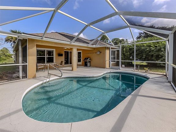 This 3 bedroom, 2 bath POOL home on a private lot in Sunny North Port, Florida has everything you are looking for in a home. Imagine sippig your morning coffee overlooking your private backyard with the peace of mind of No HOA restrictions and NOT being n a flood zone. You can spend your days at North Port's downtown Wellen Park taking in some live music, browsing a local market or perhaps a bike ride on the legacy trail. Then of course time to catch a sunset at one of the great locat beaches. This is what your days can look like if you buy this great pool home! Some of the highlights of this home are 2023 roof, Split bedroom floorplan, two large living areas, separate dining area and additional counter dining. The Large Primary suite overlooks pool area, has two closets, en suite bathroom with dual vanity and soaker tub and separate shower. Guest bedrooms are on other end of home with a pocket slider separating the space. Between the guest bedrooms is the large laundry room which has a useful utility tub, There is tons of storage and closet space throughout the home and even an additional pantry and private office area behind kitchen as you head in from the garage which makes grocery day a breeze! Pool area has large covered area and the backyard is oh so private and feels like your own little oasis! This home has so many great feature and great potential with its large and bright floorplan and convenient location. Make sure to schedule an appointment to see this one!