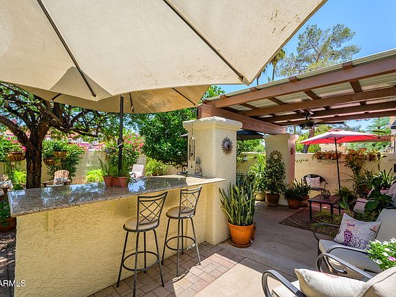 3 bedroom/ 2 bathroom patio home in the heart of Tempe. BIG TICKET ITEMS ALREADY ADDRESSED: Newer HVAC, HotH20 heater, water softener, r/o system & Roof. Eat in kitchen w/courtyard views. Newer cabinets & countertops throughout. Slate tiled showers/tubs, updated fixtures, wood & tile flooring. Spacious family room with vaulted ceilings & fireplace. Quaint formal dining room. Shutters throughout. Quaint backyard with mature shady orange tree and meandering vines. Built in bar and large covered patio - perfect for entertaining or just enjoying a nice evening outdoors. HOA takes care of your front yard maintenance & the community offers a pool, tennis courts, & RV storage and parking. Come see this one today! Washer, dryer and fridge convey. Some furnishings for sale. Patio pergola and ceiling fan replaced over the last 2 years. Exterior light fixtures are newer as well. Water softener and R/0 are new in 2024. Garage door and opener new in the last 3 years including weather-stripping. Majority if the ceiling fans th/out the home are new too! Exterior painted in 2024.