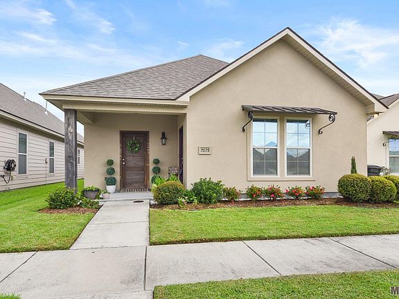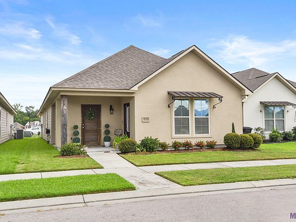 Don't miss out on your chance to own this super cute home in Pelican lakes. Driving up you will love the extra parking pad off the street, the manicured landscaping and the inviting front porch. Entering the home you will love the open floorplan with the living room, dining area and kitchen all flowing into each other. The home is nice and bright with plenty of natural light, laminate flooring, and high ceilings. The kitchen is on trend with white cabinets, granite countertops, subway tile backsplash, stainless steel appliances and a huge island. All 3 bedrooms are great size and sellers have upgraded the closets to take full advantage of them. The master bedroom has plenty of space for your large furniture and a great ensuite bath complete with double vanity, separate tub and shower and large walk in closet. There is a large side covered patio area perfect for grilling and entertaining. The home also has a full 2 rear loading garage. The neighborhood has a community pool and clubhouse great for hosting friends and gatherings. The neighborhood is right off Burbank and about 4 miles from LSU. Custom window treatments will remain in the home. Make your appointment today!