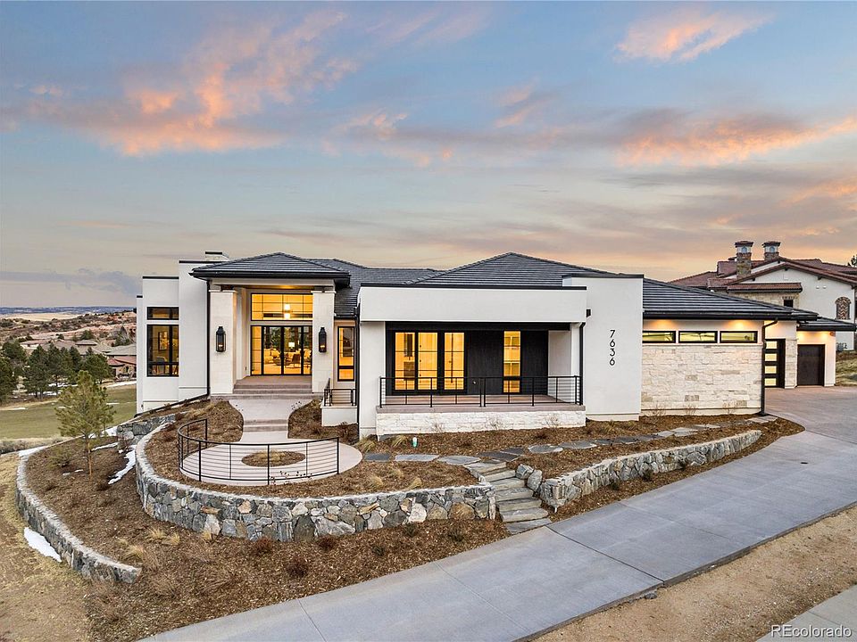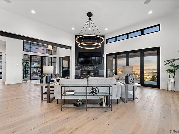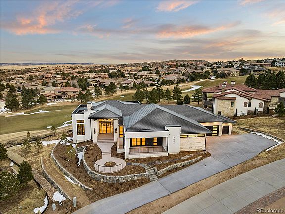 Welcome to contemporary luxury living at its finest in the prestigious Ravenna community of Littleton! This residence transcends the definition of a mere home; it's an embodiment of the Colorado lifestyle. This brand new masterpiece graces an expansive estate lot of over half an acre and boasts an impressive 6,743 square feet. With meticulous attention to detail and a commitment to quality craftsmanship, this 5-bedroom, 7-bathroom residence offers a haven of comfort and sophistication. Upon entering, you'll be greeted by a main level adorned with timeless elegance along with the kitchen and entertaining space that dreams are made of. The well-appointed office provides a private workspace, while the primary bedroom beckons with its opulent features, including dual walk in closets. The guest suite ensures that visitors feel welcomed and pampered. The living spaces on this level seamlessly connect with the outdoor oasis. Step outside onto the wrap-around deck to discover a true alpine retreat. Featuring three accordion doors to a deck equipped with overhead heaters for year-round enjoyment, marvel at the panoramic views that stretch from the #5 fairway to Chatfield Reservoir and extend all the way to the iconic skyline of Downtown Denver. This space effortlessly merges the indoors with the breathtaking outdoors of Colorado. The lower level reveals a haven of entertainment and relaxation where three generously sized bedroom suites ensure privacy and comfort for family and guests. The bar and wine cellar provide the ideal setting for intimate gatherings, while the family room offers a cozy retreat for movie nights. Stay active in the home gym or indulge in friendly competition in the handsome game room. From the meticulously landscaped grounds to the thoughtfully designed interiors, every detail reflects a commitment to luxury and comfort. Don't miss the oversized, heated six car garage with accompanying dog wash. Welcome to a life of unparalleled elegance and serenity!
