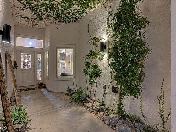 Welcome home to your very own pool oasis in the highly desirable Desert Shores community. Minutes away from shopping, dining, retail, and Red Rock Canyon! This tastefully renovated home, boasts an open floor plan with Spanish style flooring, new paint, ceiling fans, a custom Moroccan tiled two way fireplace, updated kitchen counter tops and beautiful french doors that open to the backyard! The oversized primary suite offers a spa like shower with two walk in closets and glass doors that open directly to the private backyard sanctuary. A/C Unit is 3 years old, pool was completely refinished last year, features custom lighting throughout, new canopy shade, new dishwasher, new oven, and thoughtfully planted vegetation to ensure privacy and shade with with no rear neighbors! Hurry and come see this gem!