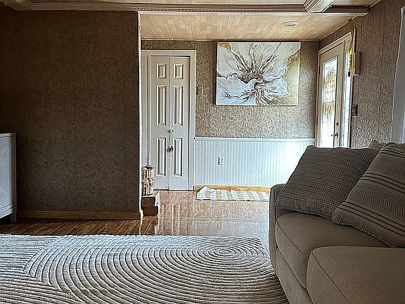 This 1 story home is on 1 acre of land with U shaped driveway. Home has a front porch and back porch. Also, has 3 bedrooms and 1 bathroom. Inside you will see a living room, kitchen, dining room, office, additional living room with access to back porch, hallway that leads to bathroom and 3 bedrooms. Wood flooring runs throughout the house. Bedrooms all have new flooring done about 2 years ago and fresh paint. Basement is unfinished but a huge size. Metal roof completed 3 years ago. New hot water tank/ system updated 1 week ago.