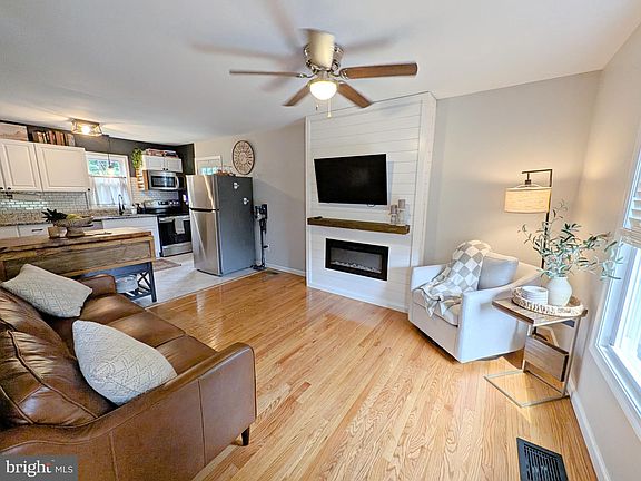 Great updated detached Cape Cod style home on over 3/4 acre in commuter-friendly Woodbine. Traditional first floor primary bedroom with en suite full bath, plus two cozy light-filled bedrooms with vaulted dormer ceilings and a shared half bath on the upper level. Open, modern kitchen with ceramic floors and granite counters, and adjacent living area featuring wood flooring and decorative fireplace, all with easy access to rear deck and parking. Fully finished lower level with rec room and flue/hearth for a future woodstove, second full bathroom, bonus den perfect for private home office or playroom, large laundry room with tub and storage space, and a convenient level walkout door to the rear yard. Ample parking, fire pit area, plenty of space to play and wooded views, all under a newer roof, with newer utilities and remodeled aesthetics.