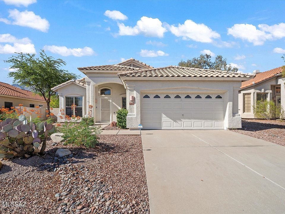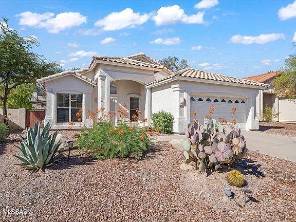 Your Desert Sanctuary Awaits--Discover this charming 3bed, 2bath home nestled in the serene Villages of Ventana. Boasting vaulted ceilings, abundant natural light, and a cozy fireplace, this thoughtfully designed layout flows seamlessly onto a spacious lot. This split floorpan features a living room and great room. Kitchen features stainless steel appliances, island perfect for cooking and entertaining. The primary bathroom features double vanities, walk in closet, shower and soaking tub. The guest bathroom features a shower tub combo with beautiful subway tile and black fixtures. Located in award-winning Catalina Foothills School District, this tranquil retreat blends comfort and lifestyle. Perfect for families, snowbirds, or entertainers--your desert oasis is ready.