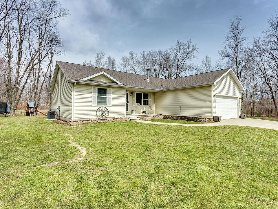 Nestled on a serene 3-acre lot, this beautiful 4 bed, 2 bath home offers 1460 sq ft of modern and functional living space. Enjoy the bright and open living and dining area, cozy kitchen with ample storage space, and three comfortable bedrooms on the main level. The partially finished basement includes a versatile fourth bedroom with an egress window. Step outside through the doorwall to the back patio and enjoy the beautiful views of the expansive lot. The 2-car garage provides ample storage space. Conveniently located near goodells park, Nature Center and easy access to I-69, this lovely property offers the perfect blend of modern style, comfort, and versatility in a peaceful country setting. Don't miss out on this amazing opportunity!