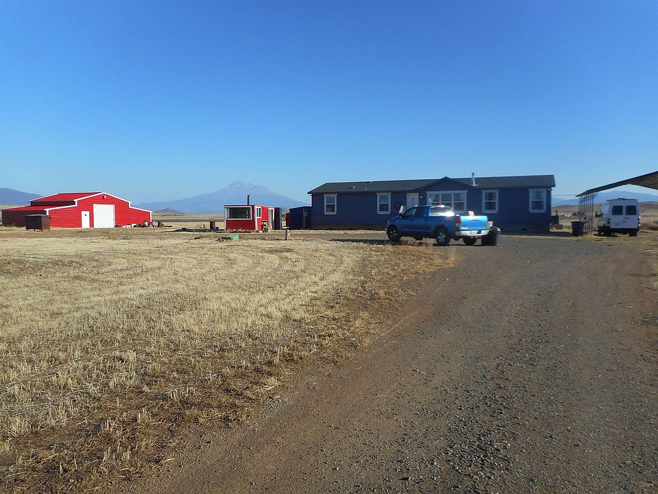 Nice country Property for Horses or live stock, Ideal for those 4-H projects or a little farm, Chicken coop, large metal barn and rustic man cave or she shed with wood stove, 2 car metal carport Home has a great floor plan with living and family room, large master with soaking tub on opposite end of home from other 2 Bedrooms, Beautiful direct view of Mt Shasta, within an hour to Mt Shasta and Ashland Ski Parks.