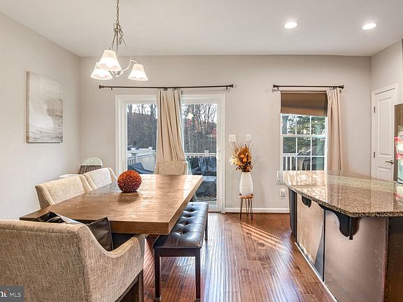 Spacious three level townhome with walk out lower level and private rear deck in Tanyard Springs. Explore the 3D tour and enjoy an open layout with hardwood floors, a bright kitchen with granite counters, custom cabinetry, breakfast island, and stainless steel appliances. The dining area opens to a small rear deck, perfect for morning coffee or grilling. The lower level offers a flexible bonus room with sliding doors to the backyard. Upstairs, the primary suite includes a walk in closet and a luxury bath with custom tile shower and dual shower heads. Two additional bedrooms provide great natural light and ample closet space. Tanyard Springs offers resort style amenities including a pool, fitness center, clubhouse, playgrounds, dog park, sports courts, and miles of walking trails. Convenient location for commuting to Fort Meade, NSA, Coast Guard, Baltimore, Annapolis, and BWI.