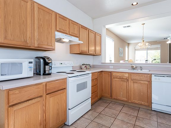 This Sierra floor plan offers functionality with creative potential. Upon entering this home you will be greeted by a kitchen with a quaint nook for meals and additional seating at the breakfast bar. The kitchen is open to the formal dining and comfortable living areas. Tucked away in the rear of the home, the master bedroom includes en-suite with step-in shower and generous-sized vanity. The secondary bedroom is conveniently located with a guest bath nearby. The covered patio provides a private space to relax. Two-car garage offers additional storage. Upgrades include a newer HVAC. All appliances convey! Walking distance to community center.
