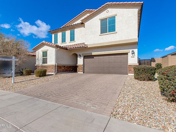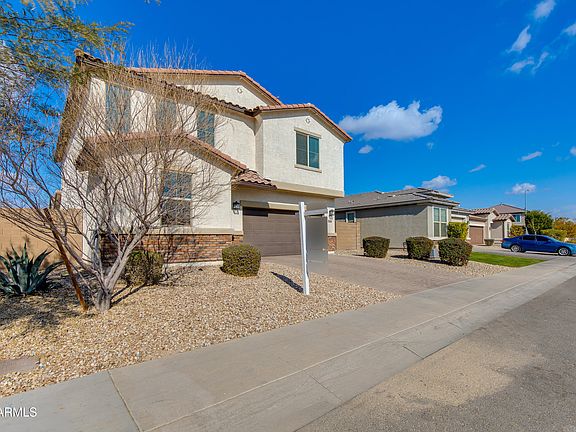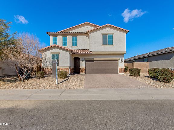 This elegant Spanish contemporary home boasts an open-concept main floor, with a secluded study and nearby powder room off the entryway. Upstairs boasts four large bedrooms with a versatile loft, laundry room, and walk in linen closet.The great room downstairs flows into a kitchen with a granite island with a beautiful etched glass-filled door to the walk in pantry of to the left. Turning towards the adjacent dining room your view of a beautiful back yard. The center-meet sliding doors lead to the covered patio with fans and lighting, and the large pool with Travertine tiles, a Baja shelf, modern water feature, and landscaping with drip water systems so you can relax. Upstairs, the spacious owner's suite with an attached bath and extra large walk-in closet complete the layout. All bedrooms have ample closet space and one the three has a walk in closet as well. The home is close to shopping, just five minutes from I-220, 10 minutes from I-10 and 25 minutes from central Phoenix and the Airport.