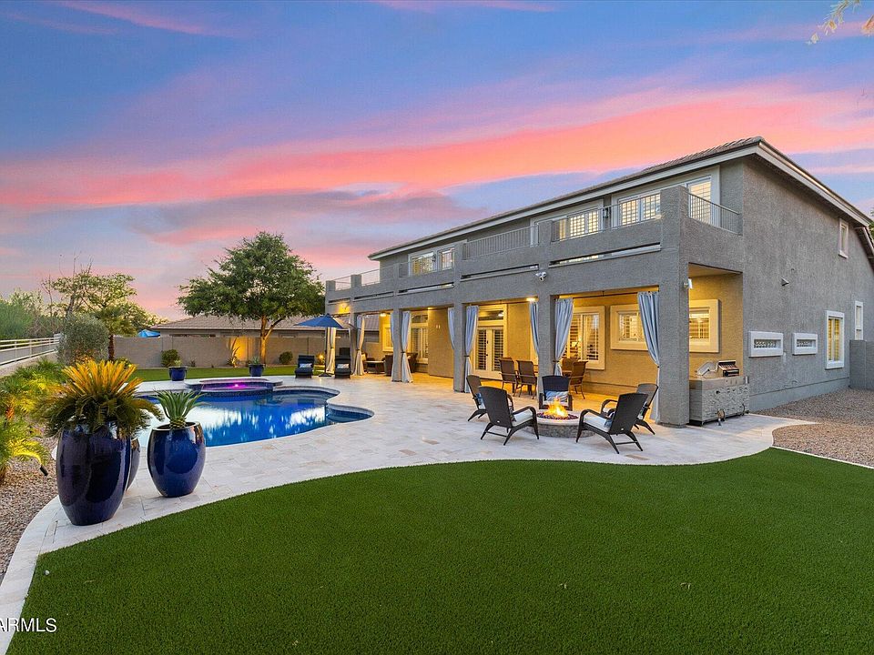 Experience unparalleled luxury in this impeccably renovated estate located in North Scottsdale's prestigious Grayhawk community. This expansive 4,461 sq. ft. residence is a masterpiece of design and sophistication, perfectly situated on a serene cul-de-sac. Indulge in the lavish resort-style oasis, complete with a sparkling pool, rejuvenating spa, and inviting fireplace. Inside, no detail has been overlooked, with upgrades that are too numerous to list, including a new roof, state-of-the-art HVAC system, and new windows. The home features a gourmet kitchen with a 66'' built-in refrigerator and a 48'' seven-burner gas stove with a double convection oven, as well as vaulted ceilings ranging from 16 to 18 feet. This sanctuary offers both privacy and convenience, with proximity to picturesque parks and top-tier A+ rated schools for all ages. Embrace the epitome of refined living in this exclusive Grayhawk home!!