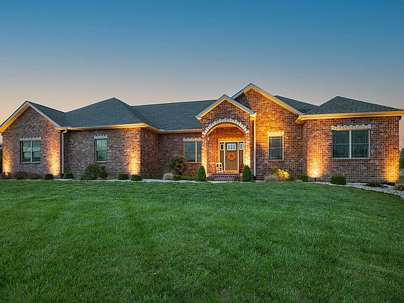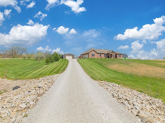 Checkout this stunning property, it checks all of the boxes. Home sits on 5 acres with lake, 3 car attached garage, Pole barn and heated inground pool. Home features include, Full brick, 9ft main level and 9 ft lower level ceiling height, Open floorplan, floor to ceiling windows, Large kitchen with plenty of cabinet space, solid surface counter tops and walk-in pantry, Beautiful floors throughout, living room has a gorgeous wood burning fireplace. Nice sized bedrooms and Large primary bedroom with huge walk-in closet and bath. Lower level features walkout basement, family room, 4th bed room and vault room with steal safe door. Everything in this home is perfect, you wont want to change a thing. Set your appointment today!!!