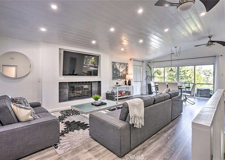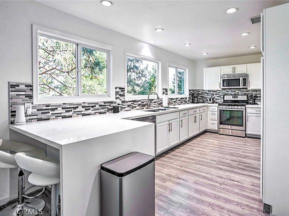 This home definitely has the WOW factor! You will surely be surprised when you open the front door to find this picturesque retreat! You will be welcomed by clean beautiful lines with breathtaking views of the forest as well as Lake Gregory. The open-concept design allows natural light to flow through the living spaces highlighting the elegant decor. The kitchen, adorned with quartz countertops and modern appliances, invites both culinary exploration and gatherings. The home boasts 3 large bedrooms and 2 full bathrooms, all on the same floor, with an additional half bathroom on the entry level. The primary suite has a walk-in closet as well as a beautiful full bathroom. The sellers have created two exterior entertaining spaces which you are sure to love. Step outside onto the deck where you can savor morning coffee with a view of the lake or unwind under the stars in the evening. Don’t forget about the jacuzzi, what could be more relaxing than soaking under the stars surrounded by the forest? Although there are neighbors nearby, there is a sense of privacy and serenity. A huge selling point of this home is the street level entry and two car garage with laundry. The garage has direct access to the home, which is amazing since the garage is currently being used as a game room. This property presents a lucrative opportunity for vacation rentals, allowing owners to not only revel in the serenity of the woods but also capitalize on its income-generating potential. Call me today for a showing! This breathtaking beauty will not last long! Note: All of the furnishings, games, etc. in the home are negotiable.