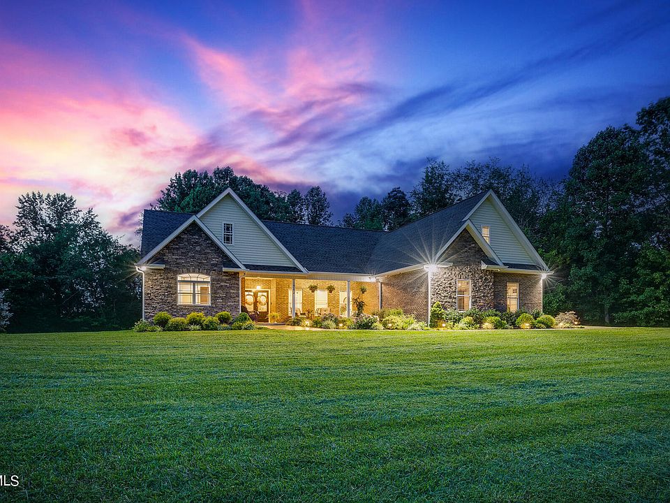Welcome to your own sprawling 20 acres with this stunning ranch style home built in 2017. A beautiful double door opens to the home of your dreams. The living room houses an amazing fireplace framed by custom built in cabinets. Next is the gourmet kitchen with tons of cabinets for storage, granite counters, and an extra prep sink. The dining room has enough room for seating for your extended family. Spend time overlooking your picturesque setting from the sunroom flowing with natural light or from the stunning and functional Trex deck. This split floor plan offers you an oversized master suite with a spa-like ensuite with extra-large shower, jacuzzi tub, and 2 walk-in closets. The other end for this magnificent home offers 2 more bedrooms, each with its own bath and walk-in closet. Beside the front door is the office, perfect for working from home. The half-bath and the laundry room finish off the first floor. The garage has no step. The basement is a totally separate living space which makes it ideal for parents, adult children, or an Air B-N-B. The open floor planned basement has its own kitchen, dining area, living room, and office space with a separate bedroom and its own bath. With all this newly finished basement, you will still have plenty of storage with a workshop or craft room, a great storage closet, and even some room to store items in the utility closet. The house has a room over the garage, perfect for a media room, playroom, or second office. Do not overlook all the 20 acres has to offer - waterfall, creek, and lots of wildlife. Perfect place to forge your own hiking or ATV trails. All this is conveniently located to shopping, food, and entertainment at Kingsport Pavilion or The Pinnacle. Call today for your private showing.