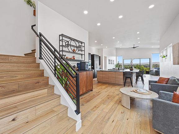 Exquisite 4BD/3.5BA, 2,835 sq ft home in a gated Eagle community with stunning mountain & foothill views. Main-level master retreat offers comfort & privacy, while the great room features expansive stacking sliders that open to a patio with fireplace & BBQ area for seamless indoor-outdoor living. Chef’s kitchen showcases a unique horseshoe-shaped island & premium Fisher & Paykel appliance package. The 3-car garage includes epoxy floors, cabinetry, 220V power & a mini-split for year-round use. Flexible spaces are designed for entertaining & everyday comfort. Enjoy direct community access to the Boise Greenbelt, plus 2 pools, tennis & pickleball courts, lush parks & walking paths. Centered in a prime location near upscale dining, shopping & conveniences, this home blends luxury & lifestyle in one of Eagle’s most sought-after neighborhoods.