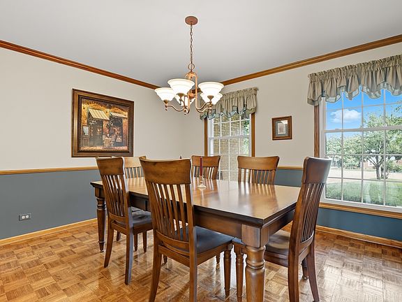 Welcome home to this beautifully maintained brick Georgian located in a quiet cul-de-sac in the heart of Frankfort! Lush landscaping creates a warm first impression as you step into the inviting foyer. The living room is filled with natural light, while the formal dining room with wood parquet flooring is perfect for hosting special meals. Gather in the open-concept chef's kitchen featuring granite countertops, a breakfast bar, stainless steel appliances, dinette area, and breakfast room. Relax in the adjacent family room with a timeless and cozy floor-to-ceiling brick fireplace. A guest bedroom, office, powder room, and convenient laundry complete the main floor. Upstairs, unwind in the elegant primary suite with a walk-in closet and full ensuite bath featuring a large soaking tub, skylight, and step-in shower. Three additional bedrooms and a full bath complete the upper level. The finished basement adds even more living space, boasting a recreation room, dry bar with beverage fridge, and a media room, ideal for game day or movie night! Outside, enjoy the maintenance-free deck and stamped patio, overlooking the private yard with mature trees, a caged garden, and storage shed. The current owners have lovingly maintained this home from top to bottom, providing peace of mind for years to come! Recent updates include a new furnace and AC (2019), windows (2022), water heater (2025), recessed lighting (2024), roof (2008), and appliances (2022). Extensive insulation upgrades keep the interior quiet and energy bills consistently low, along with zoned climate control, a sprinkler system in furnace room, and a backup sump pump offer added comfort and efficiency. This move-in ready home is located within top-rated Frankfort 157c and Lincoln-Way East school districts and close to shopping, dining, parks, charming downtown Frankfort, Old Plank Trail, forest preserves, Hickory Creek Metra station and more. Offering space, comfort, and a great location, this home is ready for you to make it your own!