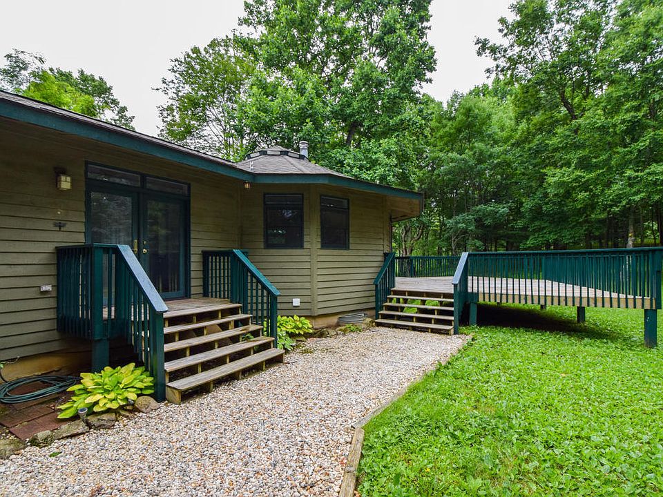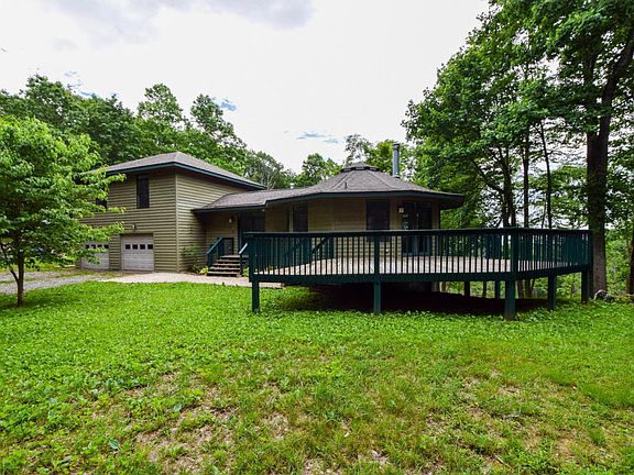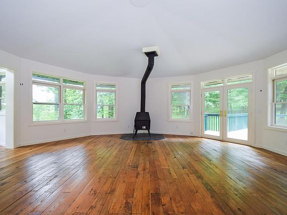 Unique architectural design perfectly situated on 20 plus acres with extraordinary views. This distinctive home features a bright, open floorplan with radiant heated floors, wood stove in great room, 2 large bedrooms (one that could easily be divided) 2 full baths, large deck off of Great room and balcony off of upstairs bedroom. An exceptional property!