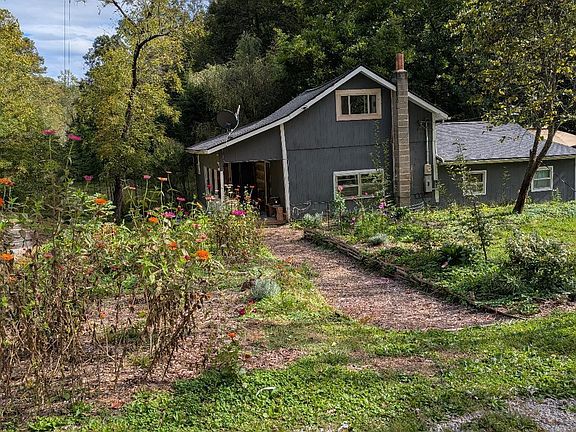 Rare find close to the lake (less than 10 minutes to Big Ridge Boat Launch- public) with 5 acres and a year round creek and bamboo grove! Great homestead possibility. Extensive flower and herb gardens, green house, two large fields with culverts at the creek for tractor access, pole barn w/ loft and kidding pen, bunny hutch, chicken coop, quail coop, goat shelter and room for whatever other critters your heart desires. Main two story log structure was built in 1900 ( that's 125 year old logs....gorgeous!) There are two additions...an eat in kitchen with large attached pantry/storage room and a spacious L shaped main bedroom with private door that opens onto the covered front porch. New roof 2022 w/ new support beams. Updated electrical. New drywall in some areas. Large deck off of the kitchen. Relaxing area with fire pit. Basement workshop. Extensive permaculture garden beds, bamboo supported walkways. Loaded with charm and room to stretch out, this is a perfect vacation home or year round living. With the lake and the state park in easy proximity it would make a terrific AirB&B. Not a drive by. Due to trees along road frontage you can't see the open fields. Please allow at least 2 hours notice to show.