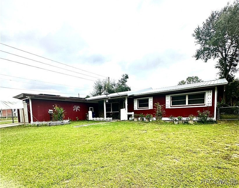 This Beautifully Maintained 3-bedroom, 2-bathroom Block Construction home is Perfectly Situated on a Corner Lot in the Desirable Crystal River FL. This Owner has put A Lot of Love into this Home. The Newly Painted Red Exterior with the Added Touch of the Shutters and Plants, Will put this Home on the Pages of Better Homes and Gardens. The New Metal Roof Just Adds a Little Extra Shine! Step Inside to Find 3 Bedrooms with Terrazzo Floors, a Comfortable Living Room, Dining Room, Kitchen Combo w/ a HUGE 23 X 11 Bonus Room off of the Garage That can be Used as Office Space, Home Gym, Playroom, Extra Bedroom, so Many Possibilities. Not to Mention Solar Assist Electric to Save you Some Money. Now Open the Slider Door to the Fenced in Back Yard for the Pets, A Shed for Storage and a Hot House for Growing Plants! Moments Away from Crystal River Schools, Shopping, Restaurants, Area Attractions Such as King's Bay, Three Sisters Springs, Fort Island Gulf Beach for Boating and Fishing, Manatees and more! Come and Make it Yours! Metal Roof 2025 Water Heater 2019.