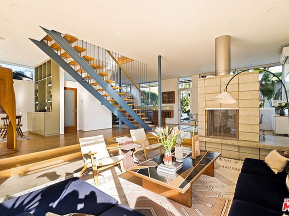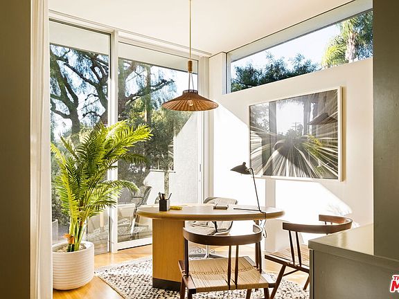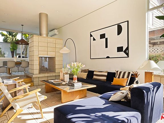 Designed by Robert Thibodeau of DU Architects, this home brings a rare blend of architectural pedigree and everyday ease to one of Venice's most beloved walk streets. On the corner of Nowita and Oakwood, walls of glass dissolve into leafy gardens, creating a rhythm of indoor and outdoor living that feels both expansive and intimate. At the heart of the home, the kitchen is a place to linger, with wood cabinetry, a Gaggenau range, and built-in seating ideal for lively gatherings or quiet mornings. A striking concrete block fireplace centers the living area, while an open, floating staircase rises as a sculptural element. Natural light pours in through skylights and oversized windows, carrying warmth throughout the interior. Upstairs, three bedrooms are wrapped in hideaway glass, including a serene primary suite with its own balcony above the street. Elegant bathrooms feature modern tile work and high-end finishes in livable comfort. In the backyard, a cedar hot tub and multiple lounge areas invite relaxation and privacy. Moments from Abbot Kinney, Lincoln, and the beach, 764 Nowita Pl is not just a home - it's a lifestyle defined by design, light, and the creative spirit of Venice.