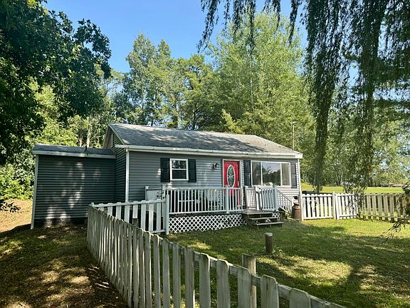 This charming quaint home is set back from the road and features a large fenced in yard, ideal for outdoor enjoyment. A oversized 2 - car garage (20x24) was built in 2021, offering ample space for 2 cars, storage, or an at home gym. (current use) The garage is complete with an industrial heater to keep you warm during winter months and has an overbuilt slab. Inside, the open-concept living and kitchen area is flooded with natural light, thanks to the large windows. The primary bedroom includes its own full bathroom, while an additional spacious full bath also has the washer and dryer. The cozy spare bedroom is ideal for guests or maybe as an at home office. The front porch/deck is waiting for you to relax and overlook the lovely front yard and majestic willow tree. Electric (NYSEG): 179.00/month *This includes 3-4 months using industrial heater in garage.* Internet: Spectrum