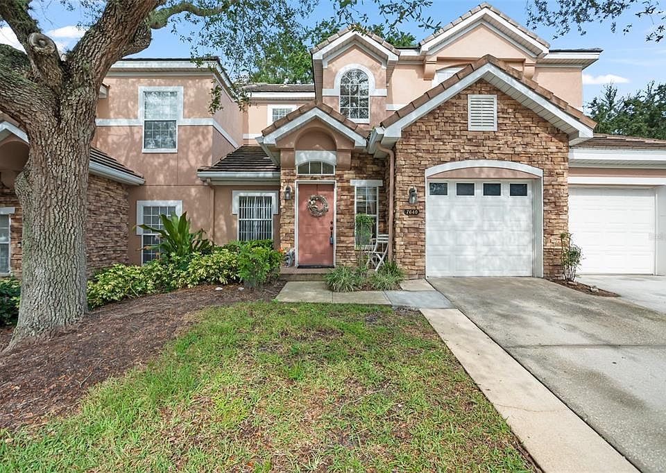 Welcome home to this beautiful two-story condo in the heart of Dr. Phillips! As you enter this gated community called Phillips Bay, you will be impressed with the architecture featuring mixed Stone fronts and winding roads. This charming 3 bed, 2 bath home offers a unique blend of privacy and natural beauty. The light natural colored floors make the home feel warm and cozy. The living room has french doors that lead out to the covered and screen private porch. The separate dining area provides the perfect space for entertaining and creating lasting memories with loved ones. The large kitchen, complete with stainless steel appliances, offers ample space for culinary creativity and storage. The spacious master bedroom boasts a large walk-in closet, dual sinks, a separate shower, and a bathtub, providing a peaceful retreat. The versatile third bedroom offers flexibility as a home office, catering to your lifestyle needs. Additionally, the home features a one-car garage with ample storage space, adding convenience to your everyday living. Take advantage of the community's amenities which include pool, gym, and clubhouse. In this desirable area you are just 1 mile from the famous Restaurant Row, Universal, and short drive to many other popular amenities in Dr Phillips. You'll have access the top-rated schools, entertainment venues, and major highways.