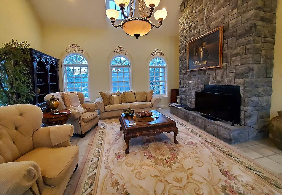 Fruit treesBocce courtSumptuous bathStone wallsStunning italian-style villaDual copper sinksDual walk-in closets